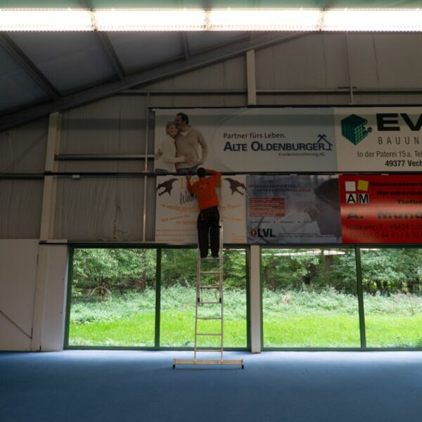 Hier sehen Sie ein Werbedruck auf eine PVC- Hartschaumplatte (5 mm) unseres Logos, in einer Größe von 1.50 m x 2.00 m. Durch die neusten Grafischen Bearbeitungsprogramme ist es nahezu möglich, jeden Ihrer Vorstellungen gerecht zu werden. Alles kann bearbeitet, eingefügt sowie entfernt werden. Von der Bestellung der Platte, über die Ausarbeitung bis hin zu Ihrem fertigen Werbeschild sind wir für Sie da.